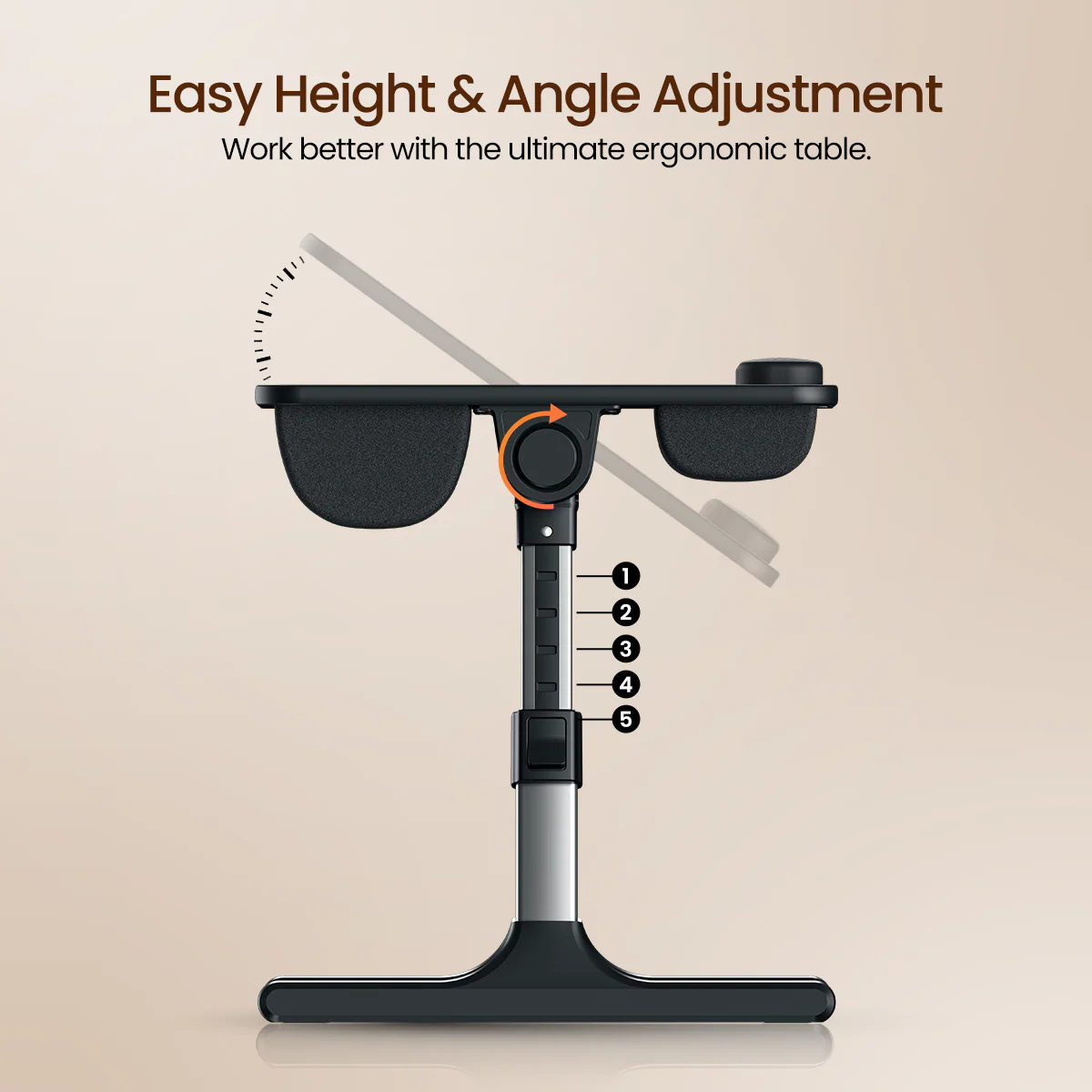 is a multipurpose, foldable laptop desk designed for versatile use on beds, sofas, desks, and floors. It offers adjustable height (5 levels) and angle (4 levels) to help reduce neck and back strain, features a soft thigh support and wrist rest, and has anti‑slip pads to keep your laptop secure. The unit supports laptops up to 17″ and can sustain weight up to 10 kg, making it ideal for work, study, and leisure.