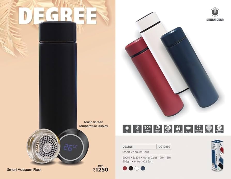 The Urban Gear Degree Bottle is a smart and functional hydration solution designed for everyday use. Featuring a temperature-indicator design for quick reference, it combines modern styling with practical utility. Its durable construction and sleek look make it suitable for office desks, travel, and corporate gifting